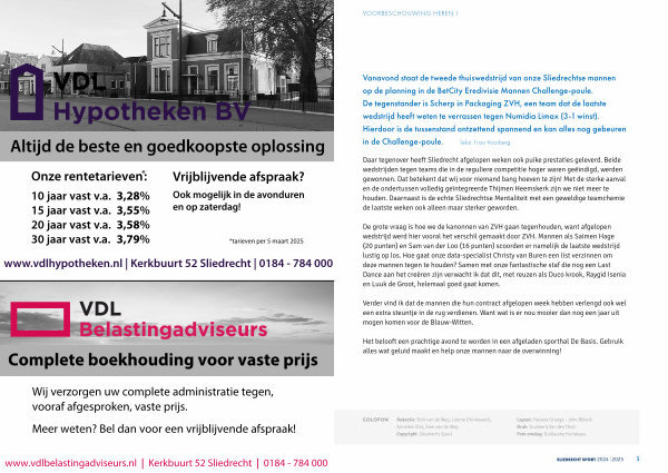 2 SLIEDRECHT SPORT 2024 | 2025 www . vdlbelastingadviseurs . nl | Kerkbuurt 52 Sliedrecht | 0184 - 784 000