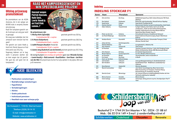INDELING STOCKCAR F1