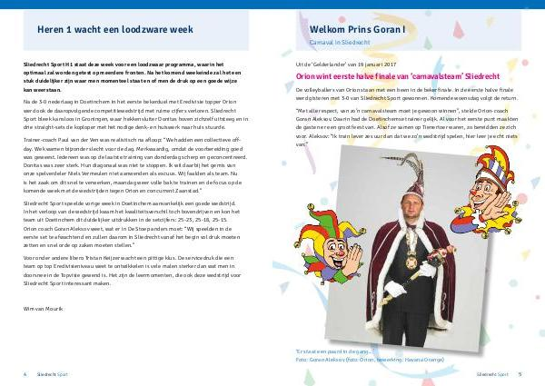 Programmaboekjes Sliedrecht Sport 25 januari 2017: H1 - Orion (halve finale Beker) | Page 4