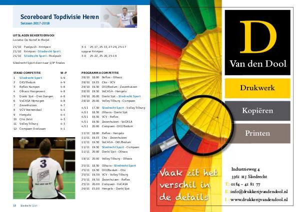 Programmaboekjes Sliedrecht Sport 25 oktober 2017: D1 - Eurosped Twente | Page 18