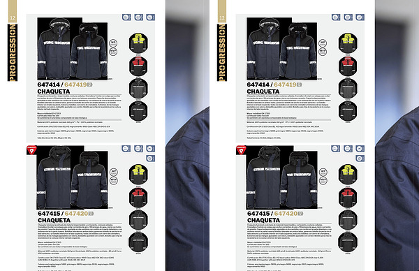 Certificación: EN 17353 Class B2, VIZ black / yellow-9910 Class AB2 | EN 342l clear 0,305 m2K / W( B) 2 / X( together with pant 4514) | EN 343 3 / 1 / X