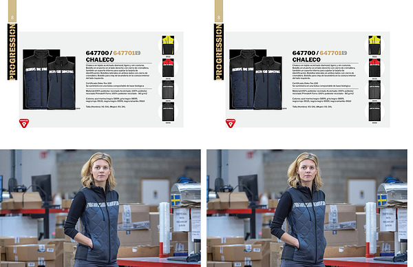 Chaqueta en tejido ligero acolchado diamond sin costuras. Bolsillos en el pecho a ambos lados con cierre de cremallera, el izquierdo con un soporte interno para sujetar la tarjeta de identificación. Bolsillos laterales a ambos lados con cierre de cremallera, también bolsillos interiores abiertos para documentos, etc. Bolsillo para chip de lavandería en la costura interior del lado izquierdo.