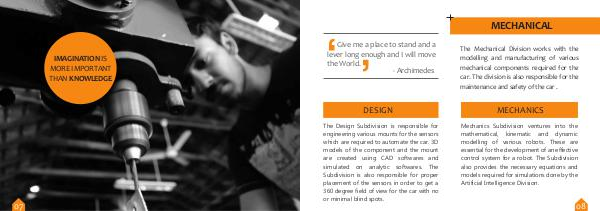 The Design Subdivision is responsible for engineering various mounts for the sensors which are required to automate the car. 3D models of the component and the mount are created using CAD softwares and simulated on analytic softwares. The Subdivision is also responsible for proper placement of the sensors in order to get a 360 degree field of view for the car with no or minimal blind spots.