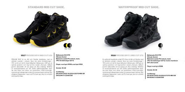 Certifiering: EN 20347:2022 + A1:2024 S1PS FO HRO SR EN 61340-5-1:2016 ESD