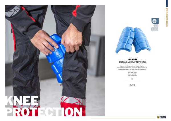 Ergonomisesti muotoiltu polvisuoja. Täyttää eurooppalaisen direktiivin 89 / 686 / ETY vaatimukset ja testattu standardin EN 14404 + A1:2010 mukaisesti.