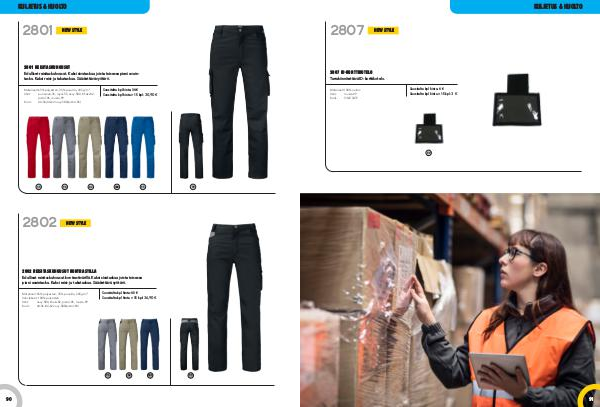 Materiaali: 65 % polyesteri, 35 % puuvilla, 245 g / m 2 Vahvikkeet: 100 % polyesteri Värit: navy-580, khaki-82, pistol-96, musta-99 Koot: 44-56( 44-62 navy-580 / pistol-96)