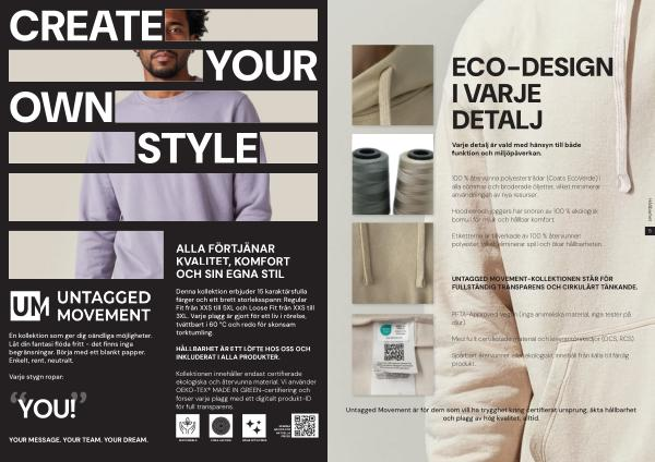 Kollektionen innehåller endast certifierade ekologiska och återvunna material. Vi använder OEKO-TEX ® MADE IN GREEN-certifiering och förser varje plagg med ett digitalt produkt-ID för full transparens.