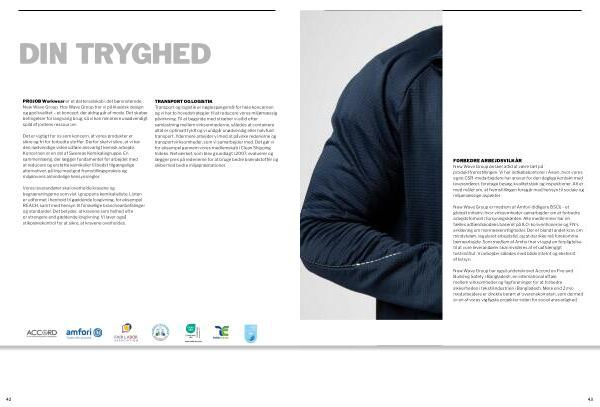 Jakke med forbøjede ærmer med justerbare manchetter. To sidelommer med lynlås og snøre i taljen. Stolpelukning med trykknapper. Lomme på venstre bryst med lynlås og en lomme på højre med plads til nøgler og mobiltelefon mv. Strop til ID-kort holder. Fluorescerende overflade med reflekser på hver skulder.