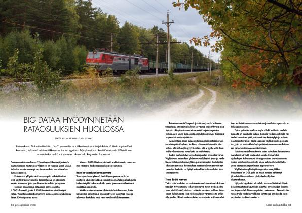 Radan mahdollisten kunnostustarpeiden arviointia varten Väylävirasto esimerkiksi yhdistelee eri lähteistä juna- ja raidetietoja ratakuormitusanalytiikan parantamiseksi . Rautateiden liikennemäärien ja kuormituksen aiempaa huomattavasti tarkemmista tiedoista on hyötyä esimerkiksi rataosuuksien kunnossapidossa .