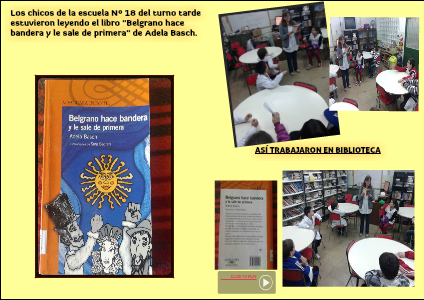 Los chicos de la escuela NÂș 18 del turno tarde estuvieron leyendo el libro "Belgrano hace bandera y le sale de primera" de Adela Basch.