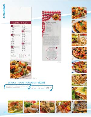 CALENDARI RETRO FRONTE SILHOUETTE GASTRONOMIA • AC355 ensile 1 fogli. Carta patinata lucida gr. 5 llestimento termosaldato 32 Testata: cm 14x9 Dimensioni: cm 14x47 100