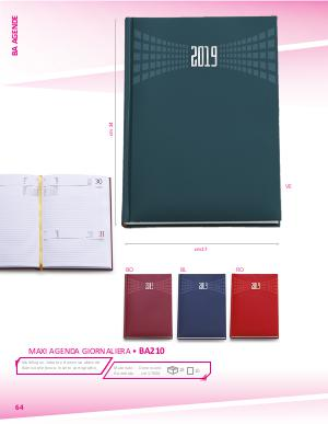 AGENDE VE cm 17 BO BL RO MAXI AGENDA GIORNALIERA • BA210 Multilingue. Sabato e domenica abbinati Rubrica telefonica. Inserto cartografico 64 Materiale: Dimensioni: Gommato cm 17X24 28 10