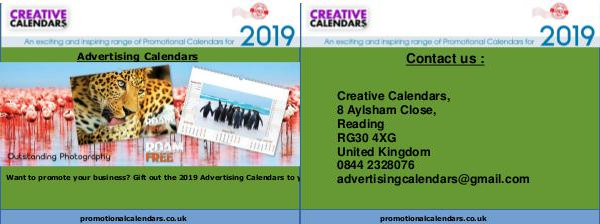 Contact us : Creative Calendars, 8 Aylsham Close, Reading RG30 4XG United Kingdom 0844 2328076 advertisingcalendars@gmail.com promotionalcalendars.co.uk