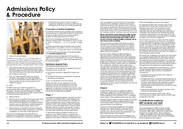 • Offers of places at The BRIT School are contingent on the previous Key Stage having been successfully completed: i. e. in the case of KS4 applicants,