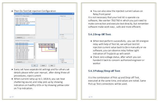 � When current ramp up to 1.1818 A, you can hear chattering sound, and relay pick up by showing indication on healthy LEDs or by showing yellow color on Trip indication. pg. 154