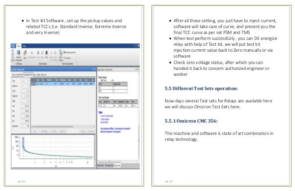 In Test Kit Software , set up the pickup values and related TCCs (i.e. Standard Inverse, Extreme Inverse and very Inverse) pg. 166