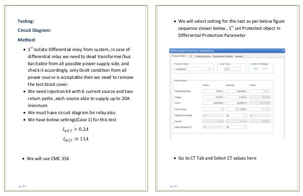 � 1 st isolate Differential relay from system, in case of differential relay we need to dead transformer / bus bar / cable from all possible power supply side, and check it accordingly, only 0volt condition from all power source is acceptable then we need to remove the test block cover.
