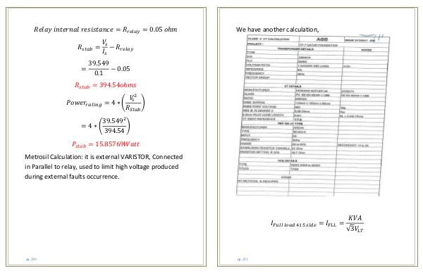 Metrosil Calculation: it is external VARISTOR, Connected in Parallel to relay, used to limit high voltage produced during external faults occurrence.