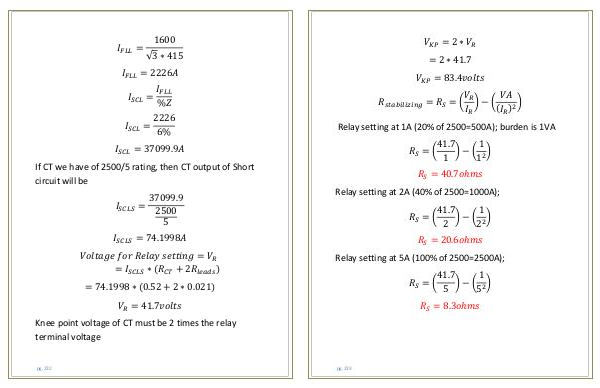 Voltage for Relay setting = V R = I SCLS ∗( R CT + 2R leads)