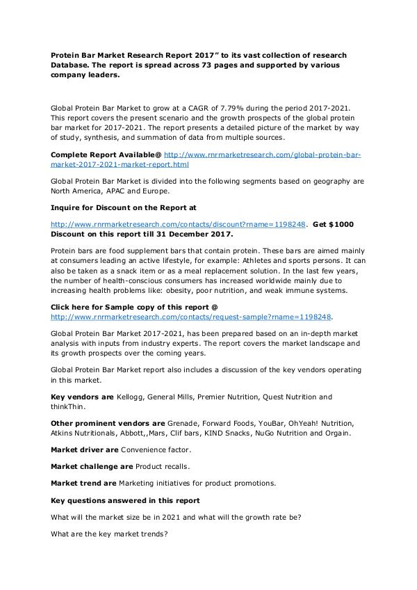 Protein Bar Market Research Report 2017” to its vast collection of research