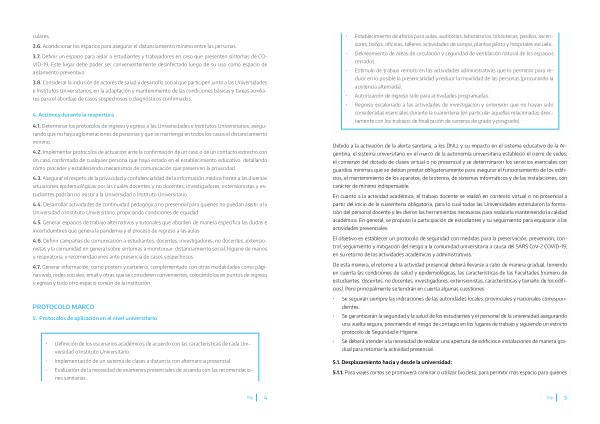 4.1. Determinar los protocolos de ingreso y egreso a las Universidades e Institutos Universitarios, asegurando