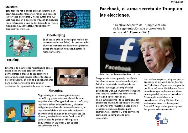 Uno de los mayores peligros que se presentó en esta red social fueron las “Fake News” que se encargan de publicar información falsa en forma de noticia, que se basan en atacar la imagen del entonces presidente Obama y la candidata a la presidencia Hillary Clinton. Estos serian mas puntos a favor para Donald Trump, quien poco a poco iba ganando las encuestas.