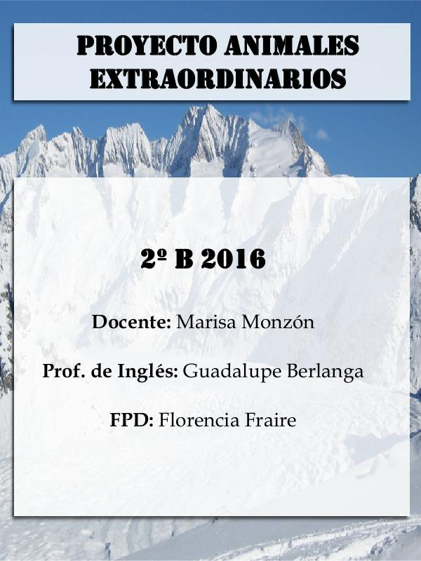 PROYECTO ANIMALES EXTRAORDINARIOS 2º B 2016 Docente: Marisa Monzón Prof. de Inglés: Guadalupe Berlanga FPD: Florencia Fraire