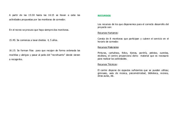 actividades propuestas por las monitoras de comedor.