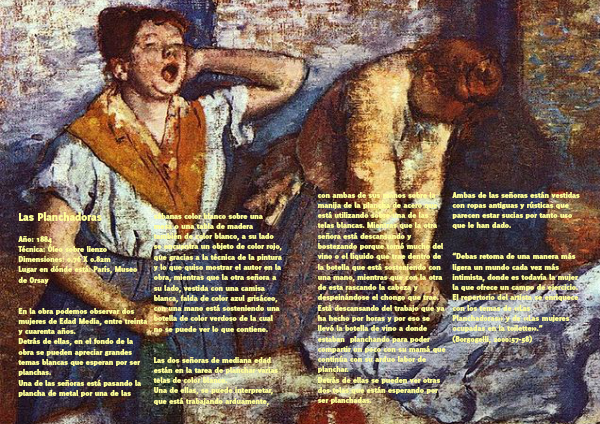 “Debas retoma de una manera más ligera un mundo cada vez más intimista, donde es todavía la mujer la que ofrece un campo de ejercicio. El repertorio del artista se enriquece con los temas de <<Las Planchadoras>> y de <<Las mujeres ocupadas en la toilette>>.”