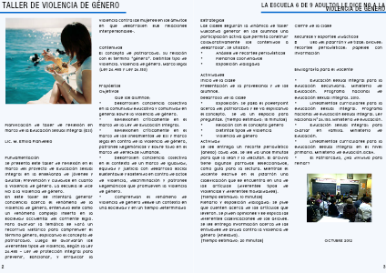 Se les entrega un recorte periodístico (anexo) cada dos. Se les da unos minutos para que lo lean y lo discutan. El archivo tiene algunos parrados seleccionados, como guía para la lectura. Mientras el docente escribe en el pizarrón una clasificación que se encuentra en uno de los artículos (diferentes tipos de violencias y diferentes modalidades).