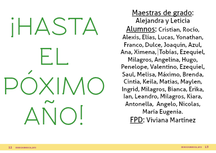 Alumnos: Cristian, Rocío, Alexis, Elías, Lucas, Yonathan, Franco, Dulce, Joaquin, Azul, Ana, Ximena, Tobías, Ezequiel, Milagros, Angelina, Hugo, Penelope, Valentino, Ezequiel, Saul, Melisa, Máximo, Brenda, Cintia, Keila, Matias, Maylen, Ingrid, Milagros, Bianca, Erika, Ian, Leandro, Milagros, Kiara, Antonella, Angelo, Nicolas, María Eugenia.