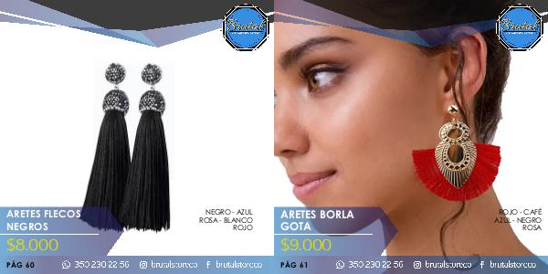 ARETES BORLA GOTA $9.000 PÁG 61 ROJO - CAFÉ AZUL - NEGRO ROSA