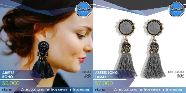 ARETES BOHO $9.000 PÁG 62 NEGRO AZUL ROJO