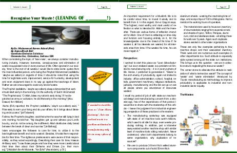 When considering the topic of ' lean-ness ', we always consider manufacturing industry. However, leanness, consciousness and elimination of waste is supposed to be in every avenue of life. Often ignored in our society, ' time ' is the root of all wastes. I would like to state some quotes from the most influential person, who being the Prophet Muhammad( sallallahu `alayhe wa sallam) in regards of time. It should be noted that using the time for legitimate work, improvement, service for humanity, development and even enjoyment does in no way go against the teachings of Islam. Rather we are encouraged to avoid any kind of waste.