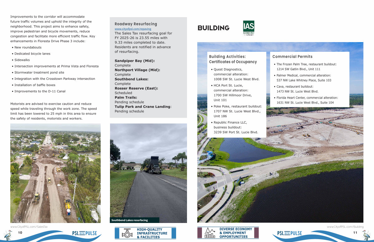 Roadway Resurfacing www. cityofpsl. com / repaving The Sales Tax resurfacing goal for FY 2025-26 is 23.55 miles with 9.33 miles completed to date. Residents are notified in advance of resurfacing.