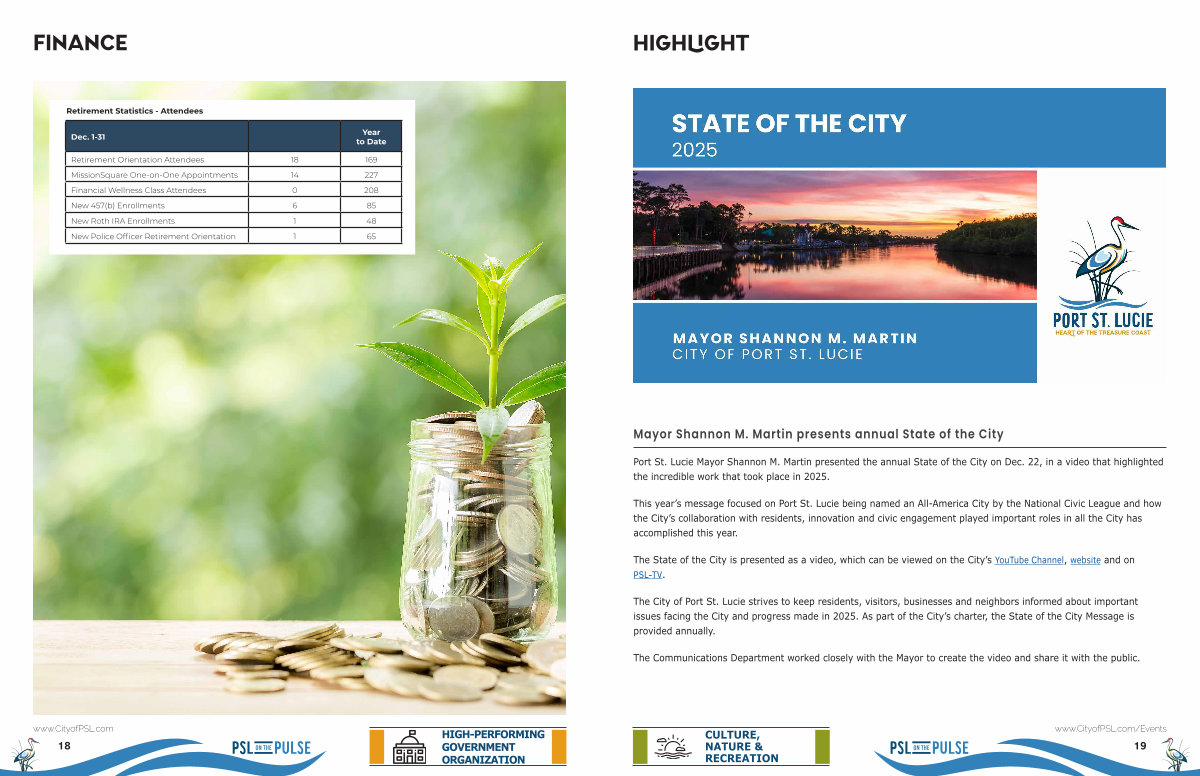 The City of Port St. Lucie strives to keep residents, visitors, businesses and neighbors informed about important issues facing the City and progress made in 2025. As part of the City’ s charter, the State of the City Message is provided annually.