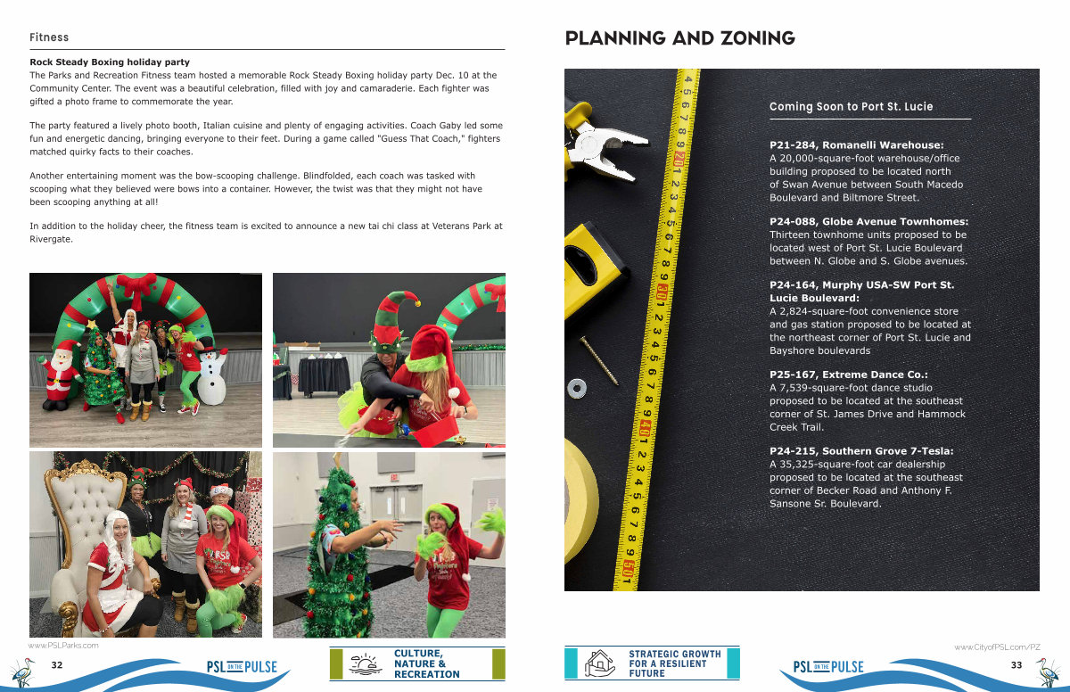 Rock Steady Boxing holiday party The Parks and Recreation Fitness team hosted a memorable Rock Steady Boxing holiday party Dec. 10 at the Community Center. The event was a beautiful celebration, filled with joy and camaraderie. Each fighter was gifted a photo frame to commemorate the year.