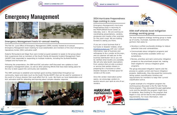 The OEM continues to establish and maintain good working relationships throughout our community , region and state ( such as the South Florida AHIMT ) that can be used for assistance in the event of a future disaster that could affect Port St . Lucie . We thank our local stakeholders and EOC activation staff for attending and learning about complex disaster response .