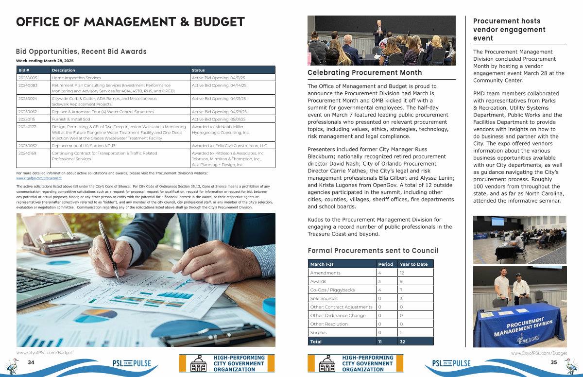 For more detailed information about active solicitations and awards, please visit the Procurement Division’ s website: www. cityofpsl. com / procurement