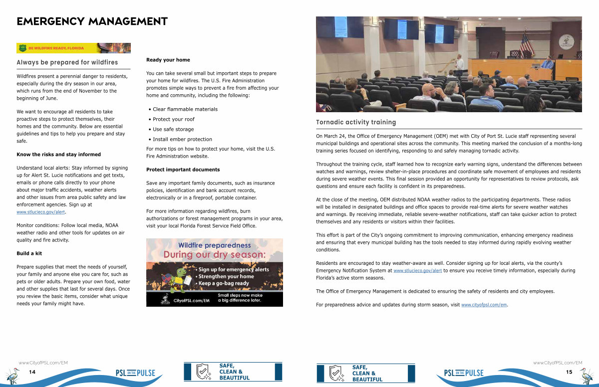 For preparedness advice and updates during storm season, visit www. cityofpsl. com / em. www. CityofPSL. com / EM