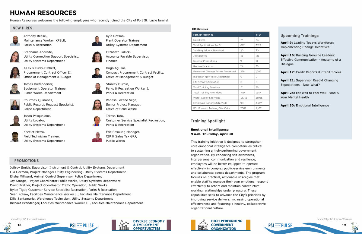 Human Resources welcomes the following employees who recently joined the City of Port St. Lucie family!