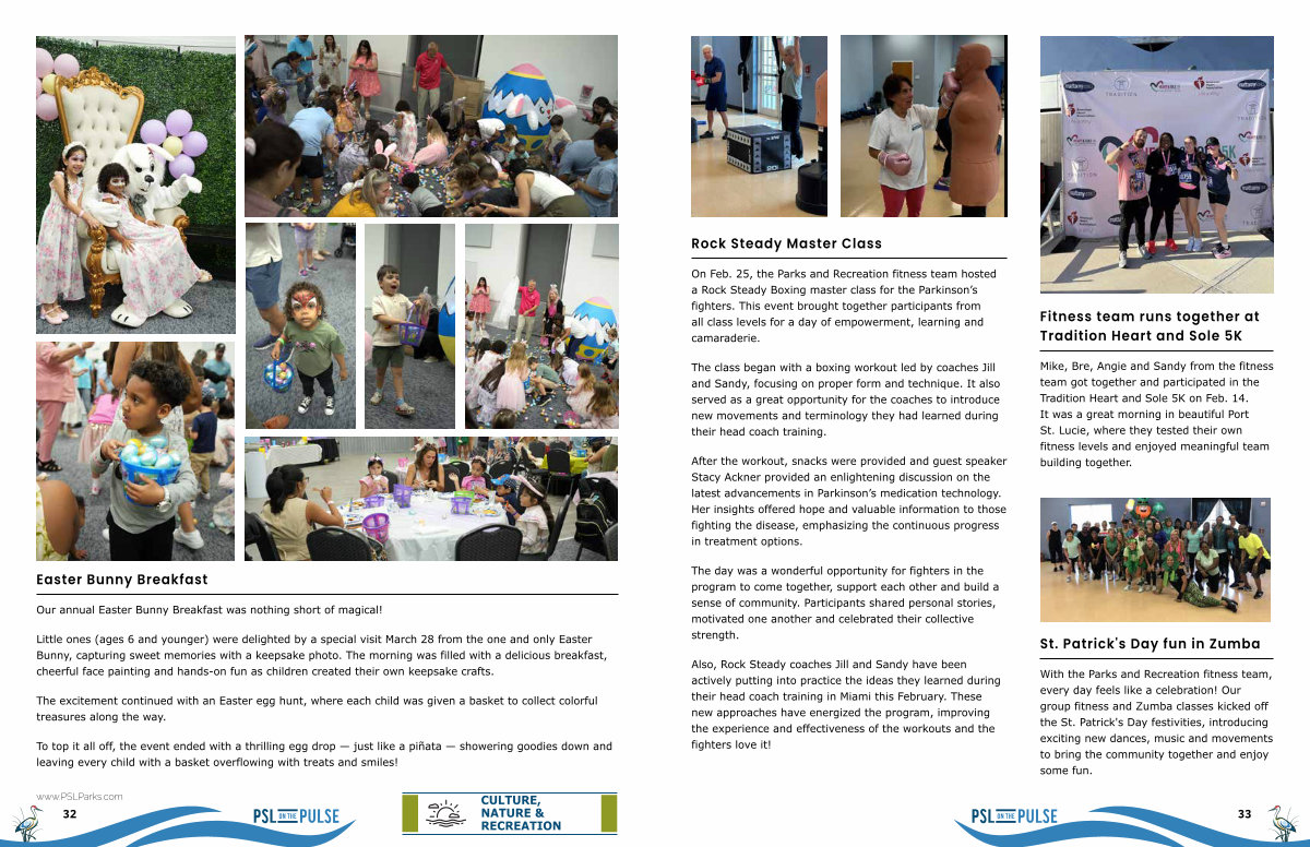 On Feb. 25, the Parks and Recreation fitness team hosted a Rock Steady Boxing master class for the Parkinson’ s fighters. This event brought together participants from all class levels for a day of empowerment, learning and camaraderie.