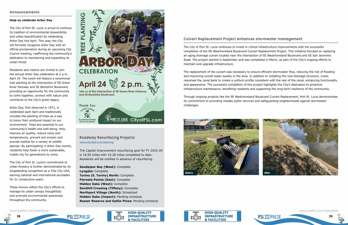 The City of Port St. Lucie is proud to continue its tradition of environmental stewardship and urban beautification by celebrating Arbor Day this April. This year, the City will formally recognize Arbor Day with an official proclamation during an upcoming City Council meeting, reaffirming the community ' s dedication to maintaining and expanding its urban forest.