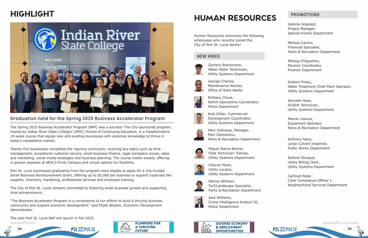 Human Resources welcomes the following employees who recently joined the City of Port St. Lucie family!
