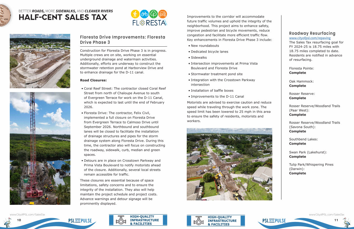 Roadway Resurfacing www. cityofpsl. com / repaving The Sales Tax resurfacing goal for FY 2024-25 is 18.75 miles with 18.75 miles completed to date. Residents are notified in advance of resurfacing.