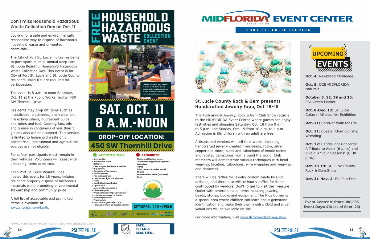 The 48th annual Jewelry, Rock & Gem Club Show returns to the MIDFLORIDA Event Center, where guests can enjoy festivities and shopping Saturday, Oct. 18 from 9 a. m. to 5 p. m. and Sunday, Oct. 19 from 10 a. m. to 4 p. m. Admission is $ 6; children with an adult are free.