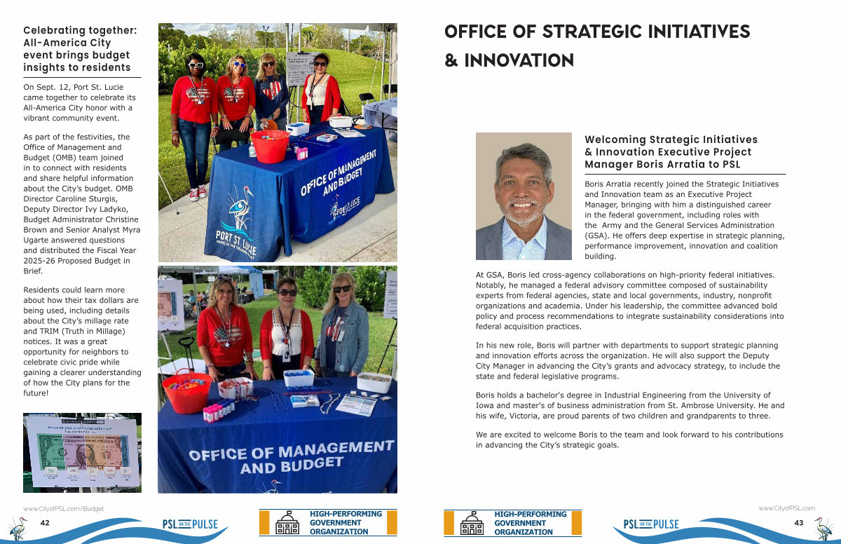 In his new role, Boris will partner with departments to support strategic planning and innovation efforts across the organization. He will also support the Deputy City Manager in advancing the City’ s grants and advocacy strategy, to include the state and federal legislative programs.