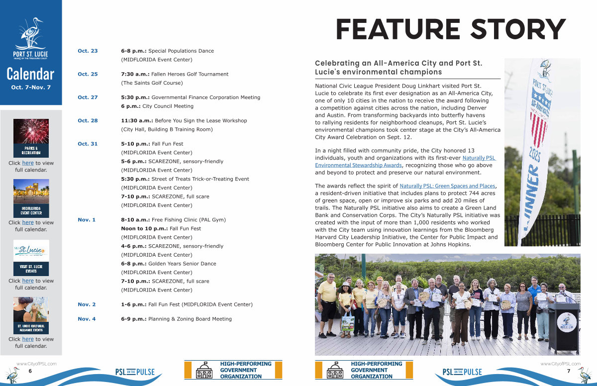 National Civic League President Doug Linkhart visited Port St. Lucie to celebrate its first ever designation as an All-America City, one of only 10 cities in the nation to receive the award following a competition against cities across the nation, including Denver and Austin. From transforming backyards into butterfly havens to rallying residents for neighborhood cleanups, Port St. Lucie’ s environmental champions took center stage at the City’ s All-America City Award Celebration on Sept. 12.