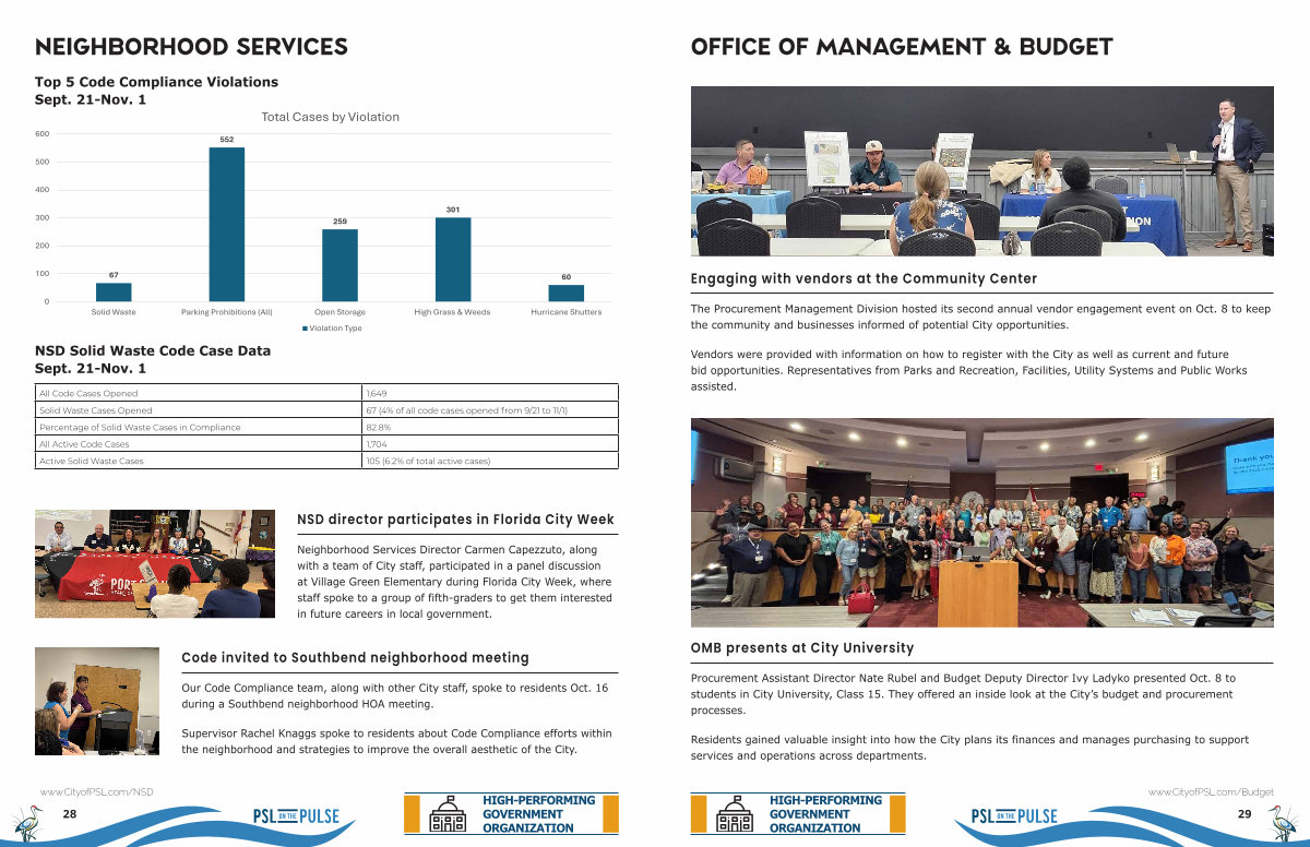 Residents gained valuable insight into how the City plans its finances and manages purchasing to support services and operations across departments. www. CityofPSL. com / Budget
