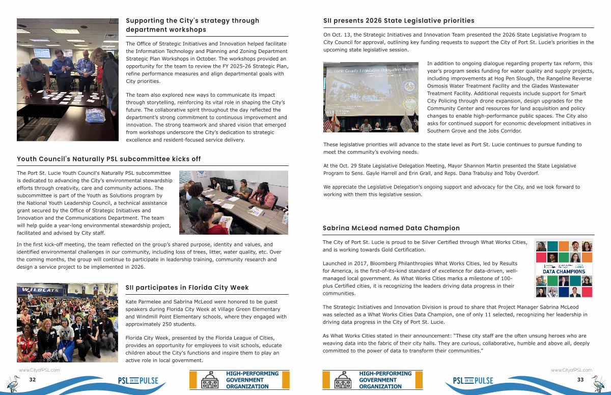 The Office of Strategic Initiatives and Innovation helped facilitate the Information Technology and Planning and Zoning Department Strategic Plan Workshops in October. The workshops provided an opportunity for the team to review the FY 2025-26 Strategic Plan, refine performance measures and align departmental goals with City priorities.
